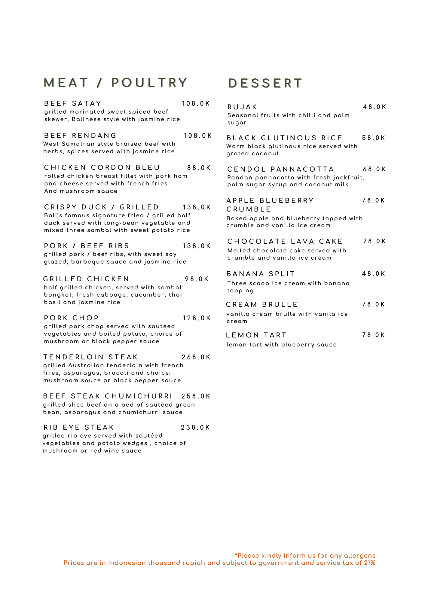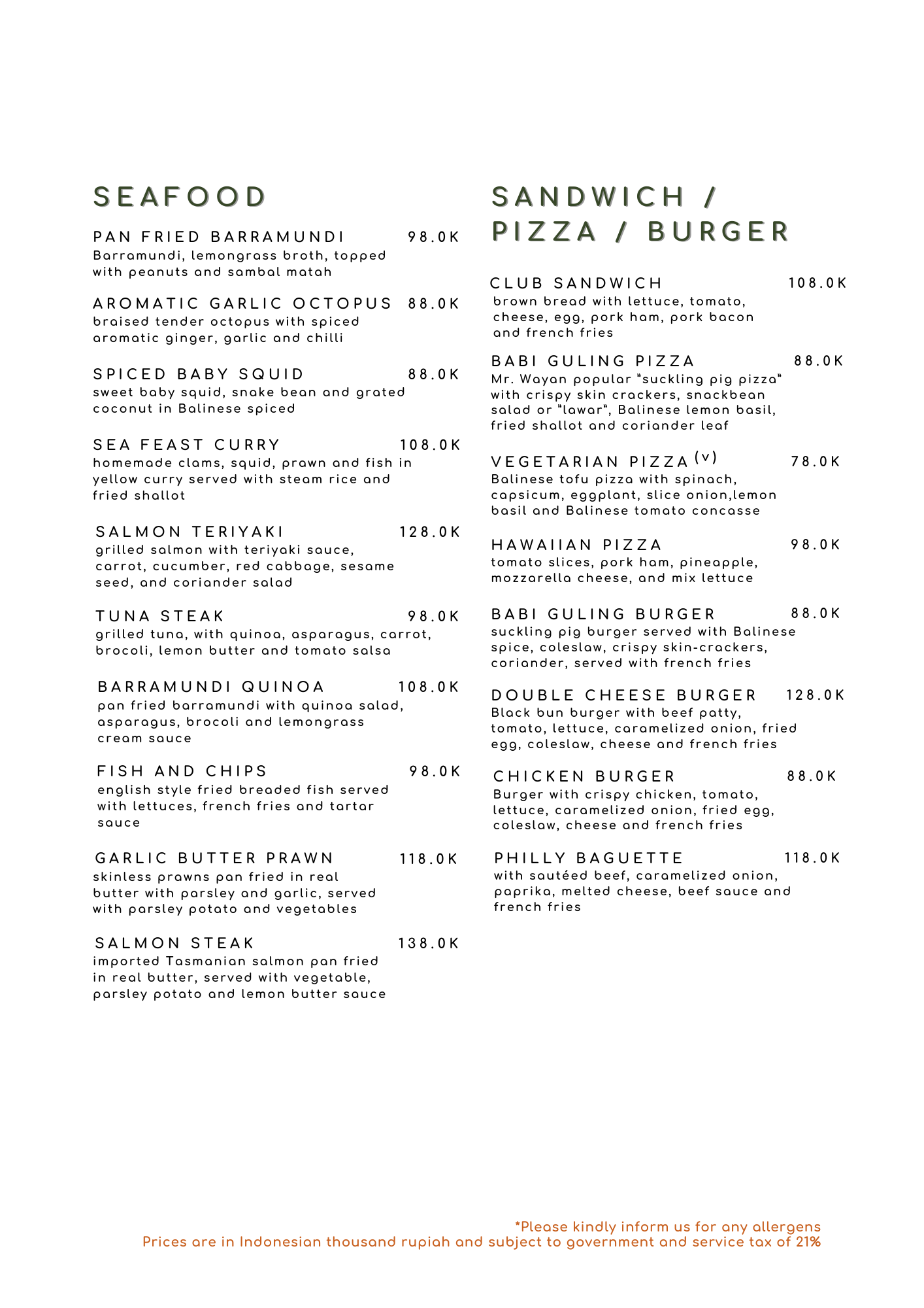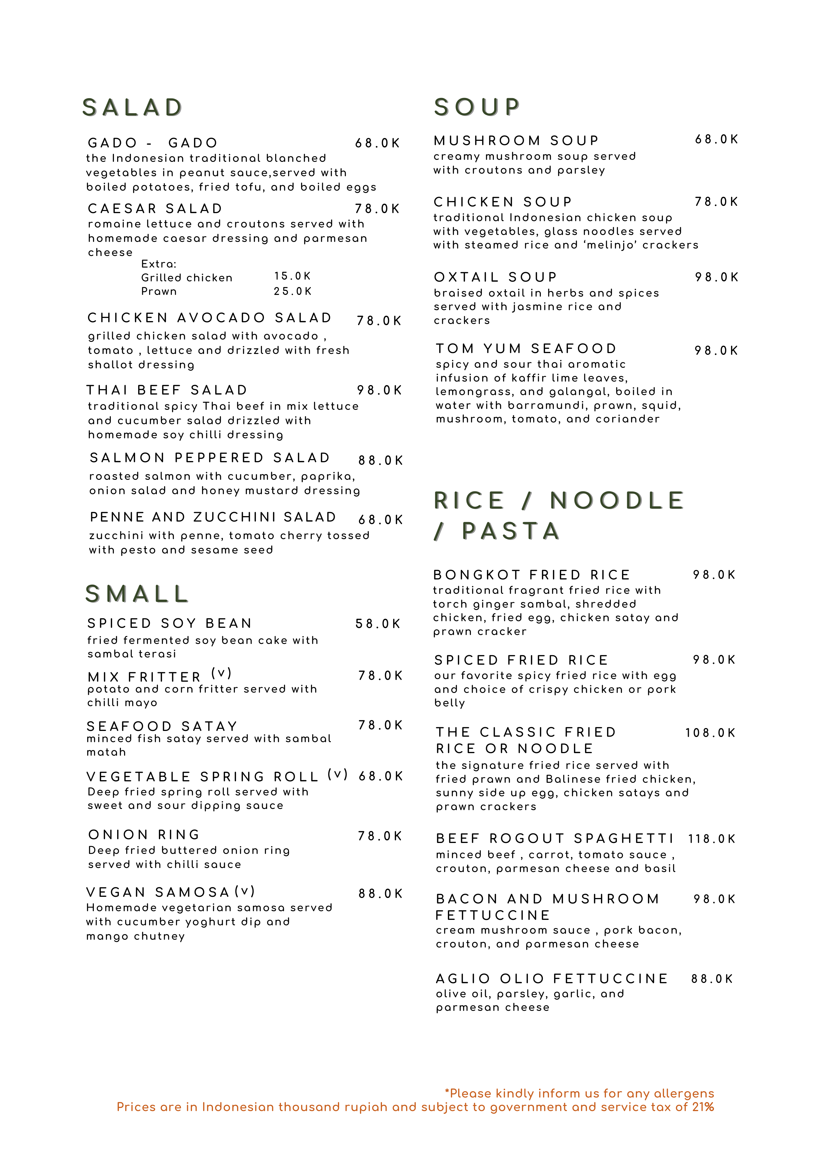 ALL DAY MENU The new journey of Mr. Wayan serving better quality of foods & drinks in a new set of Ubud ambience